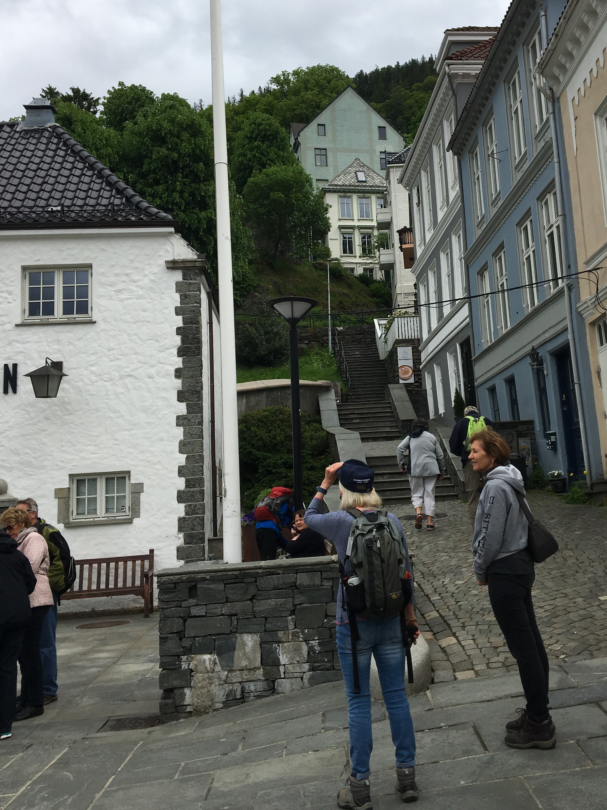 its old, picturesque wooden buildings, to the funicular station of Floibanen, Mount Floien, being one of the seven surrounding hills.